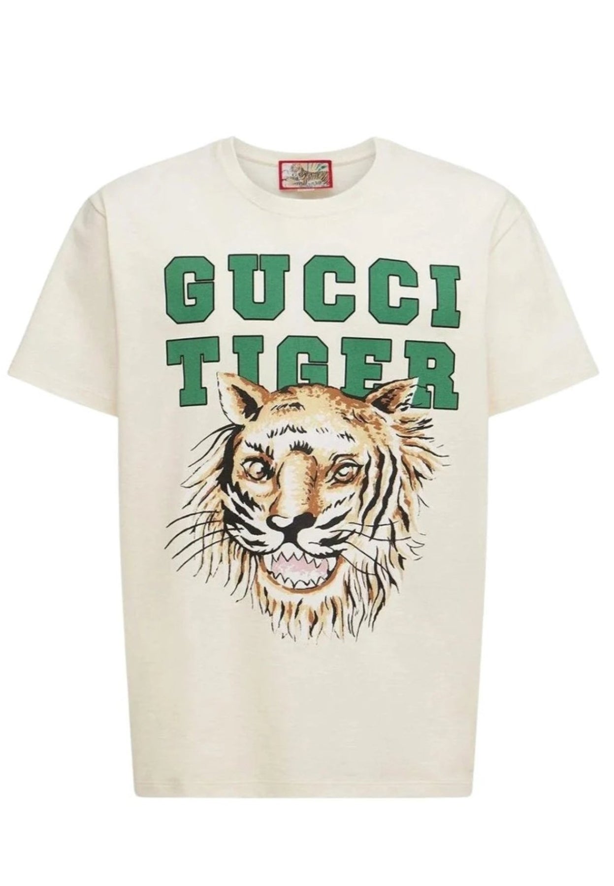 T-shirt GUCCI unisex stampa logo Tiger large fit bianco milk