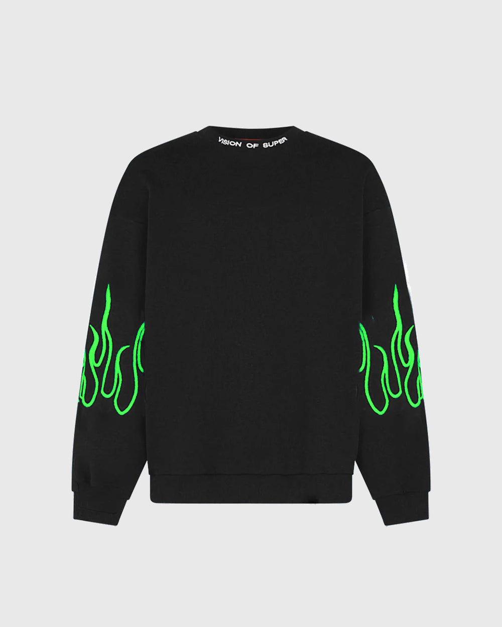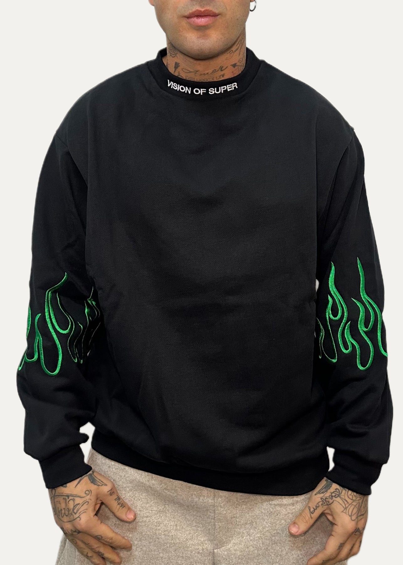 Felpa VISION OF SUPER nera con fiamme verdi ricamate