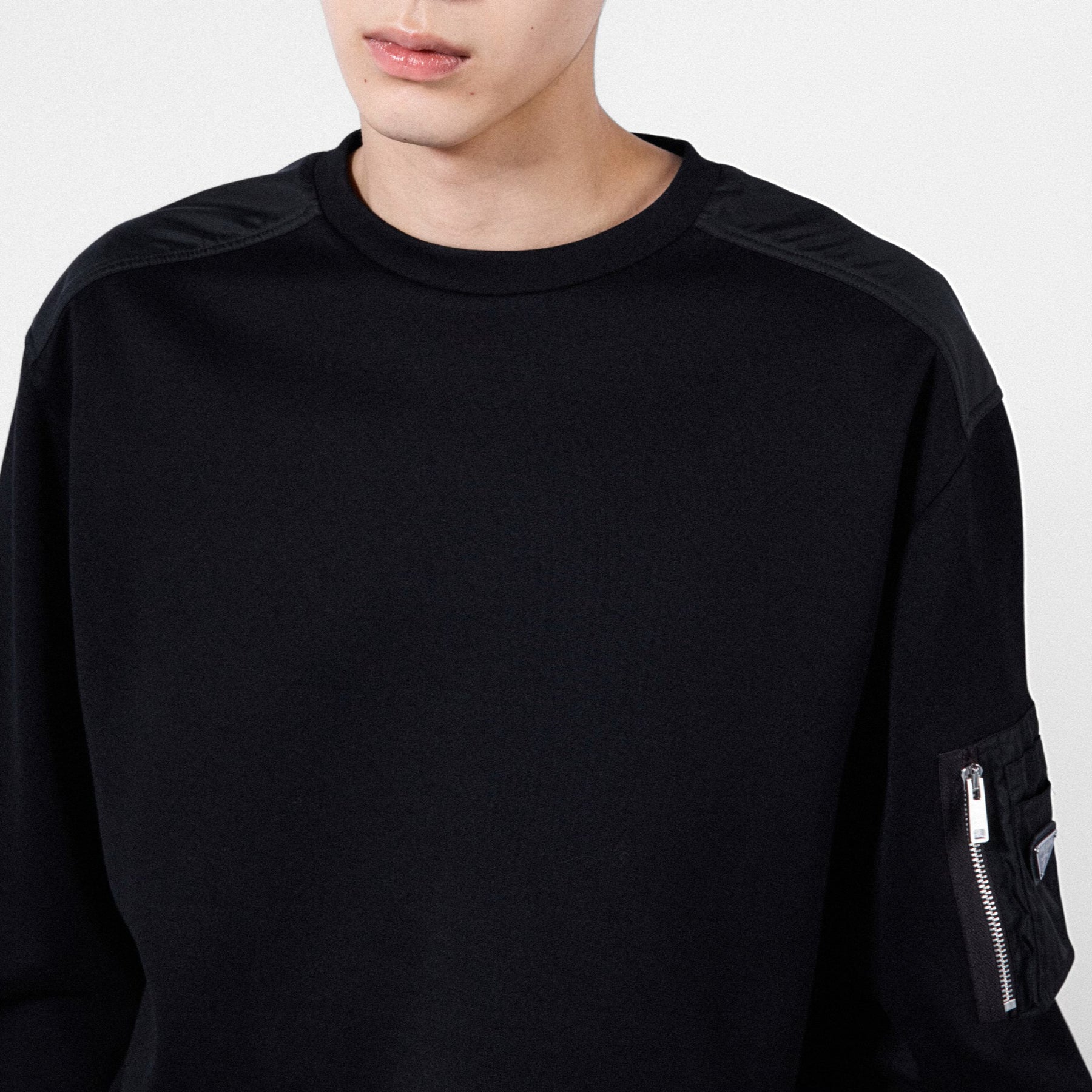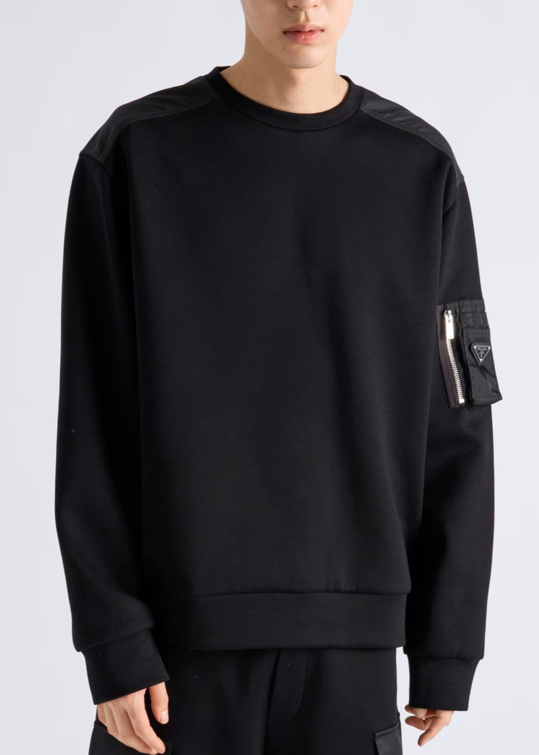 Felpa PRADA taschino Re-nylon zip con placca logo nera