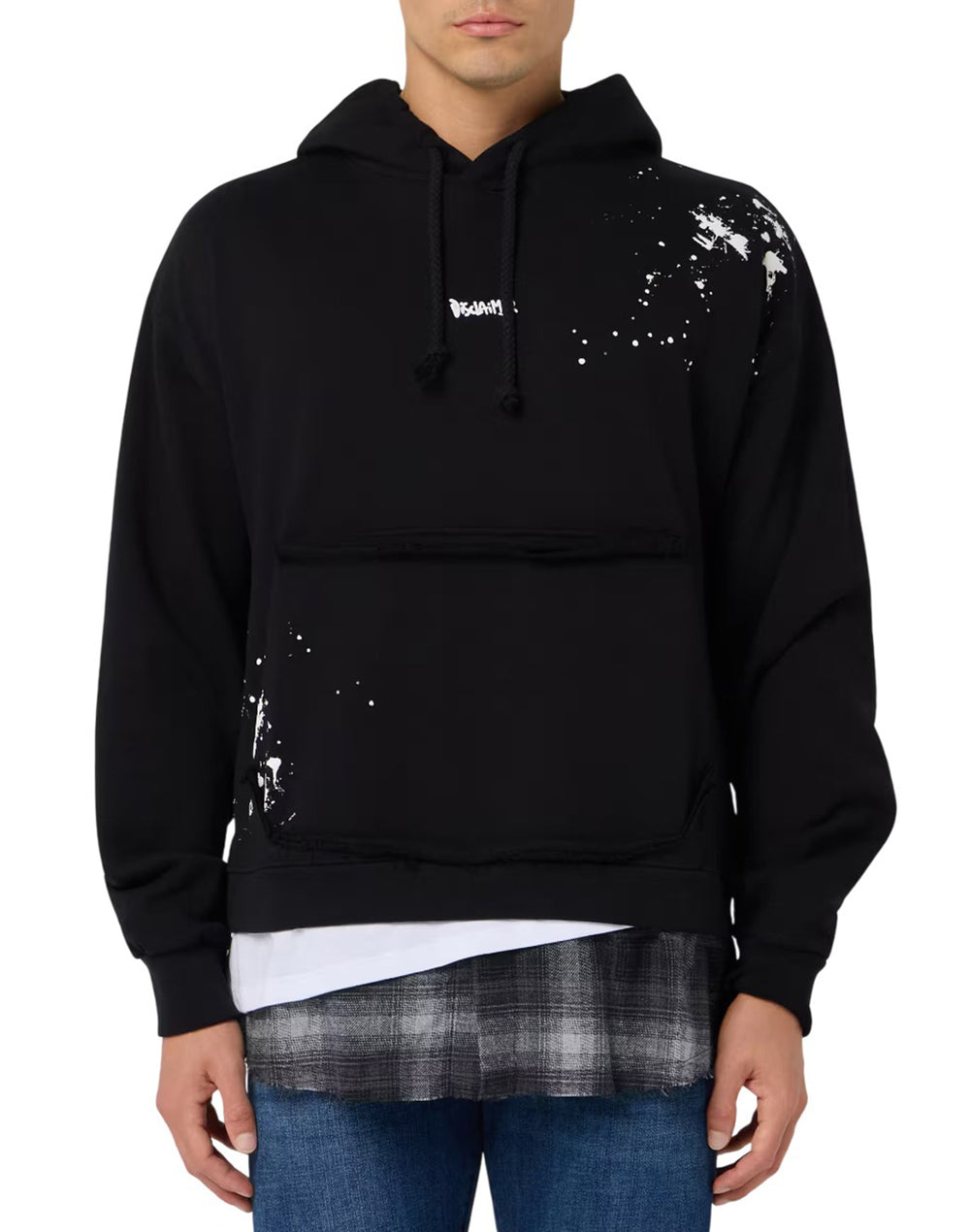 Felpa DISCLAIMER con cappuccio doppio strato camicia nera