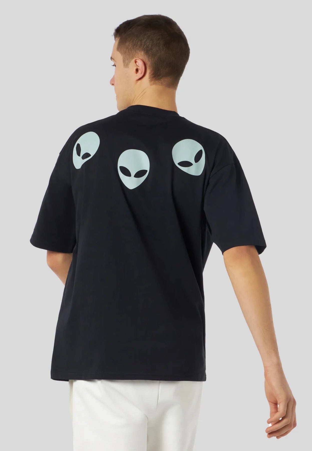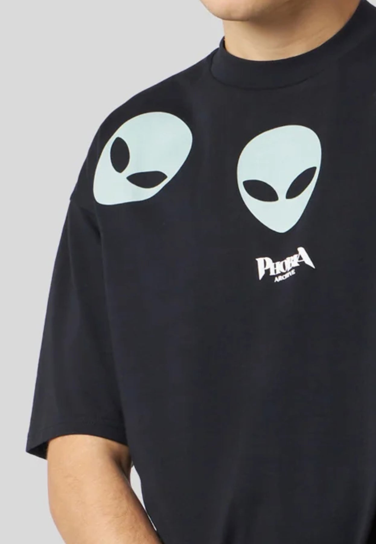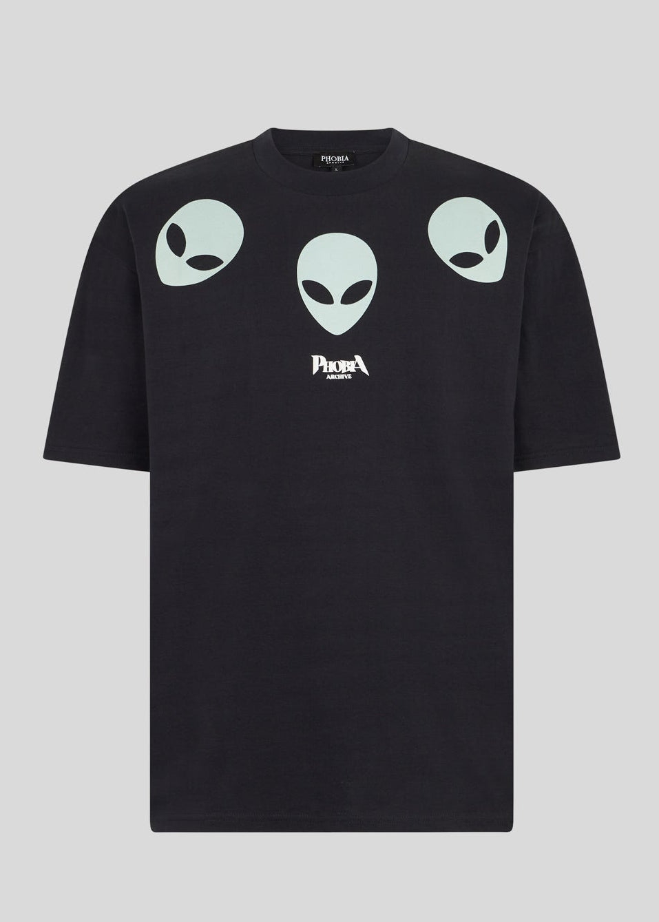 T-shirt PHOBIA nera stampa Alien fosforescente