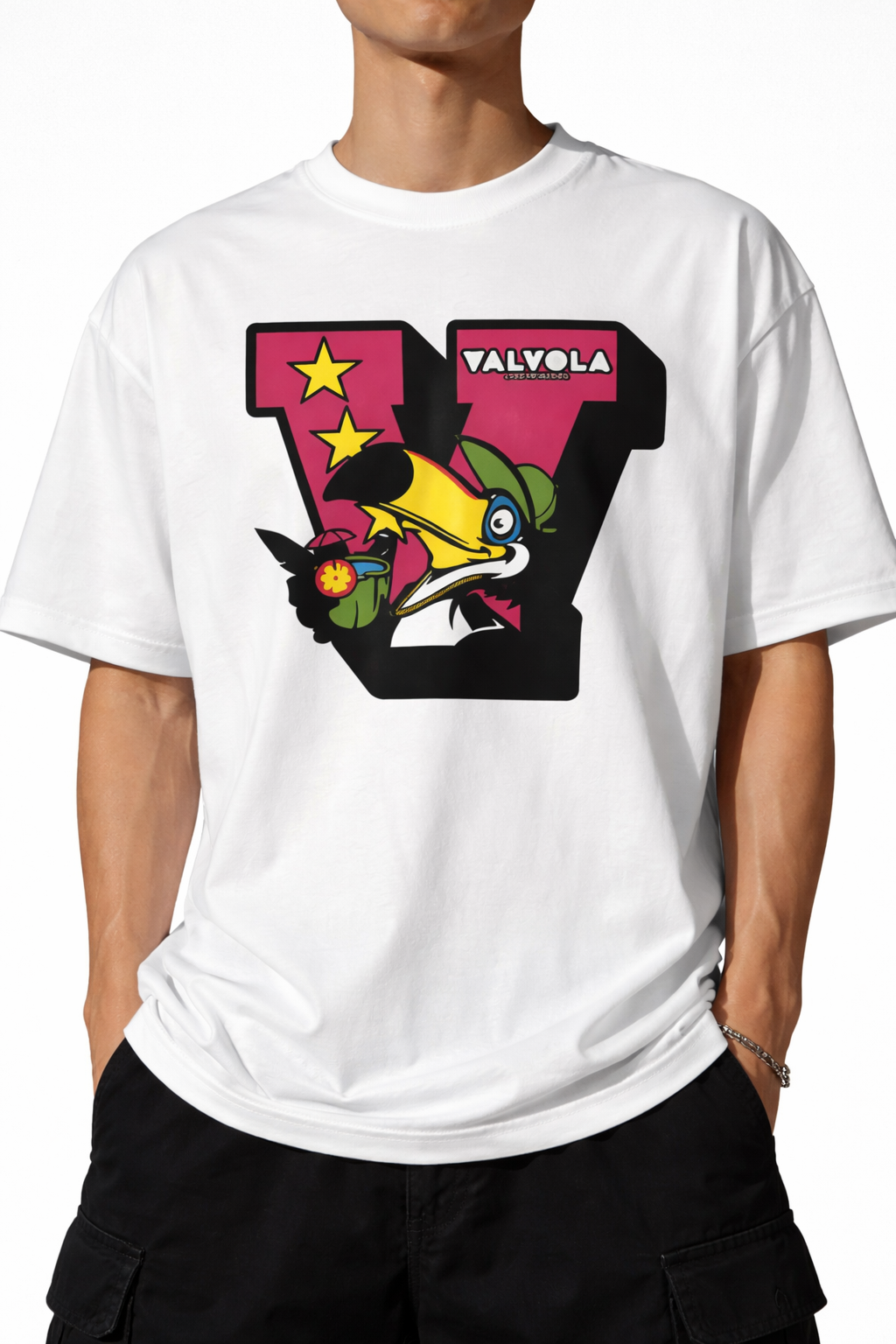 T-Shirt VALVOLA stampa grafica toucan bianca