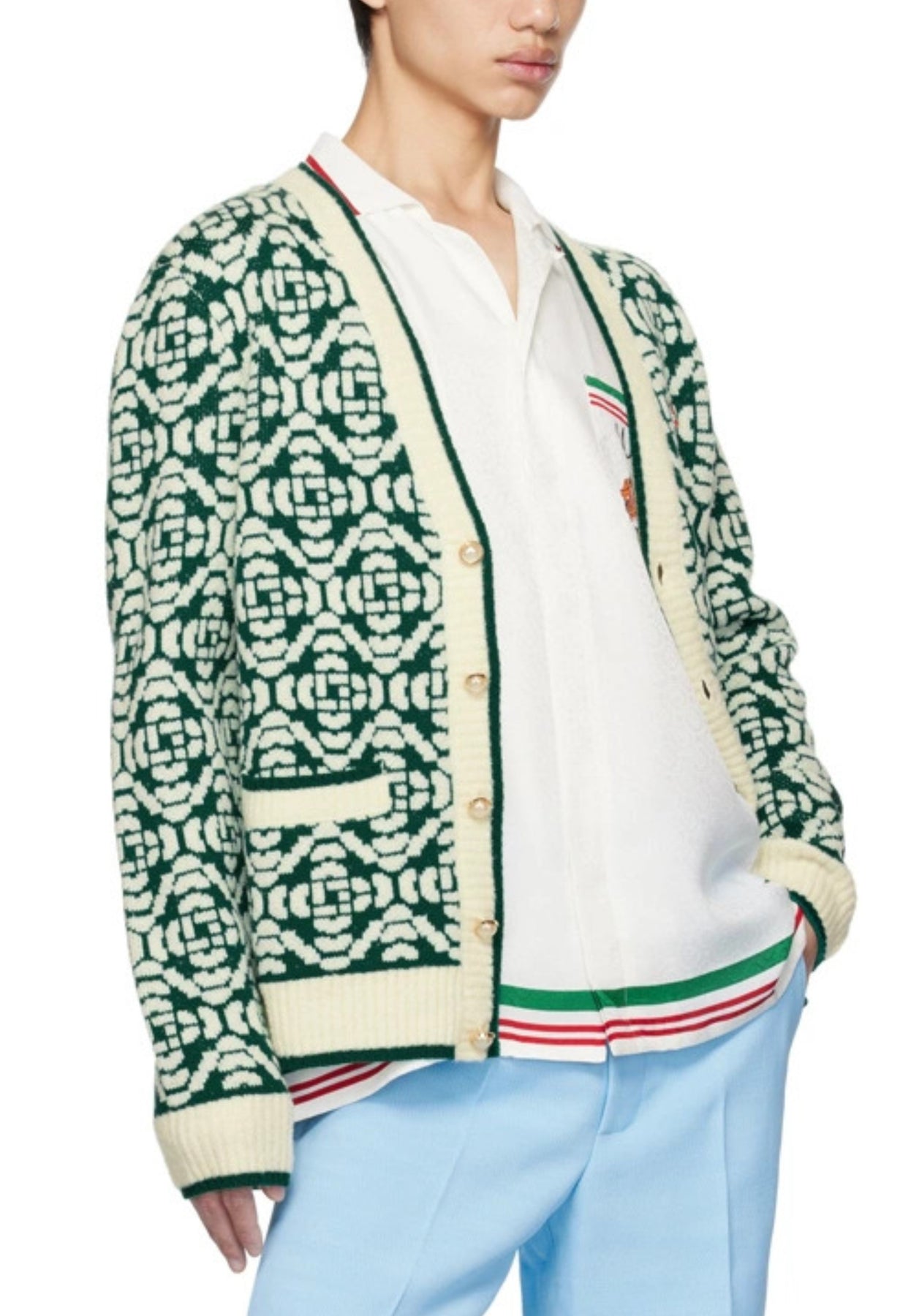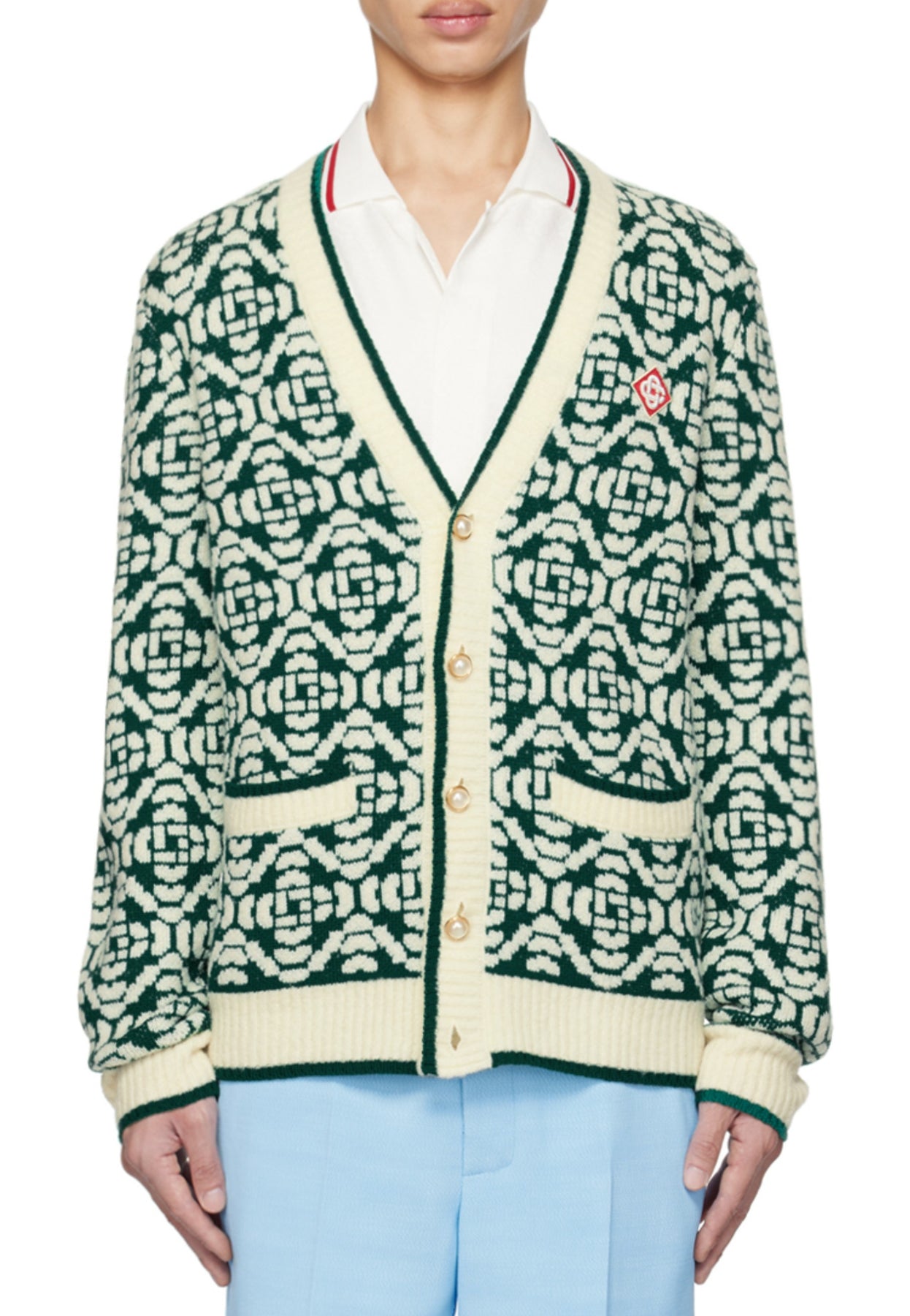 Cardigan CASABLANCA in jacquard monogram verde e bianco
