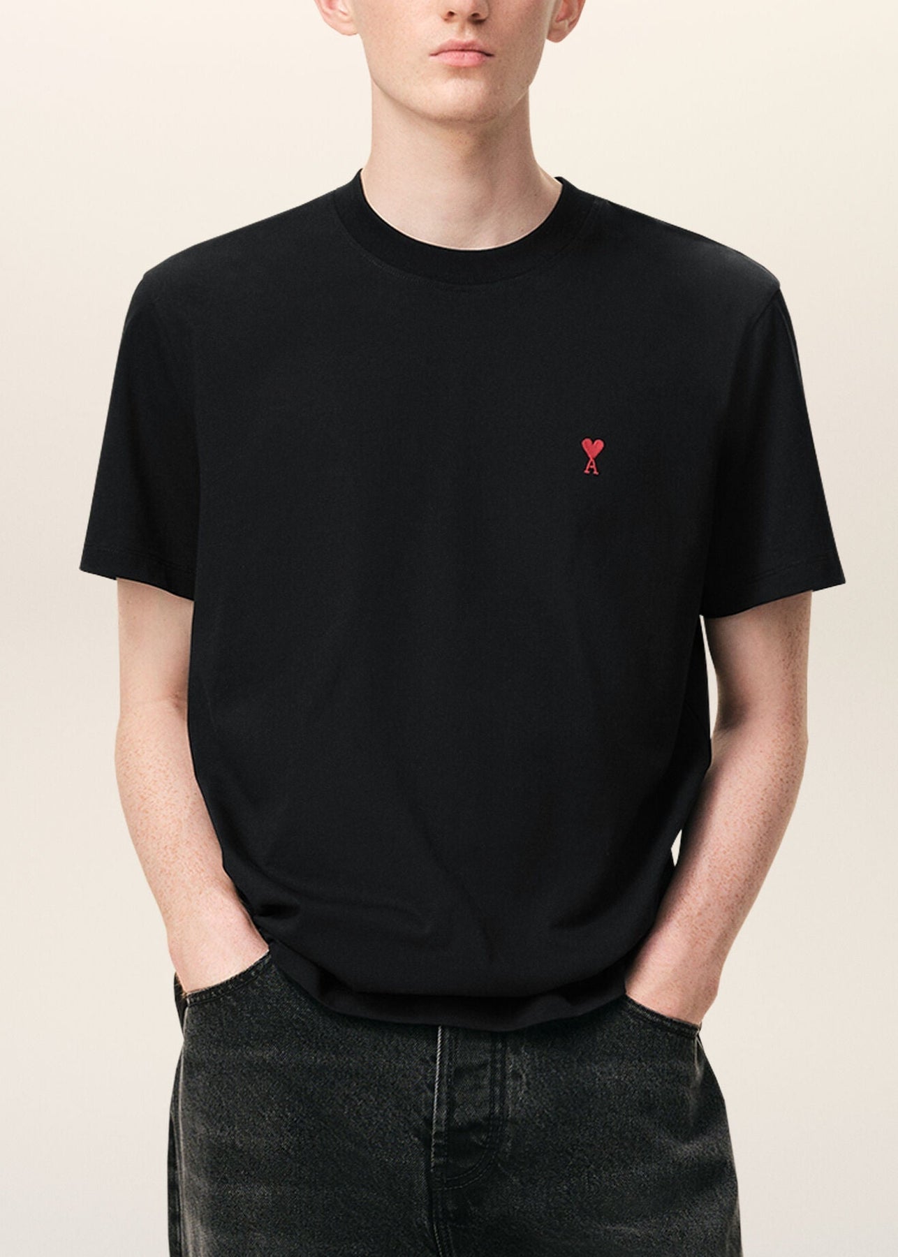 La maglietta di AMI PARIs è ricamata con il logo 'Ami De Coeur' sul petto, firma del fondatore Alexandre Mattiussi. È realizzato in jersey di cotone biologico con un tocco di elasticità.